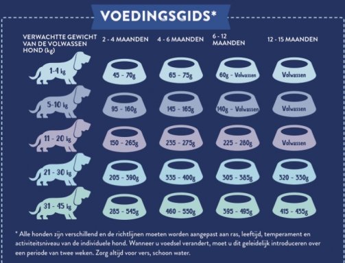 Pups van alle rassen van 2 tot 15 maanden. Ook ideaal voor pups met gevoelige spijsvertering.